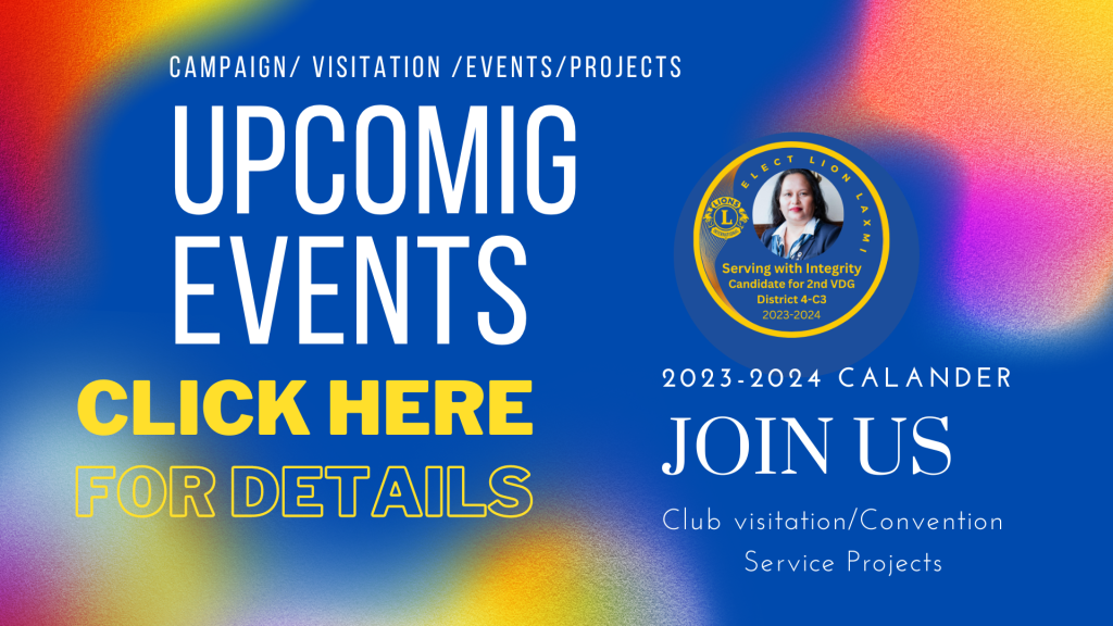 Hello! I am a passionate lion and candidate for Second Vice District Governor, District 4-C3 for the lion year 2023-2024. Please join me to serve through Lions Club International. Read more…..